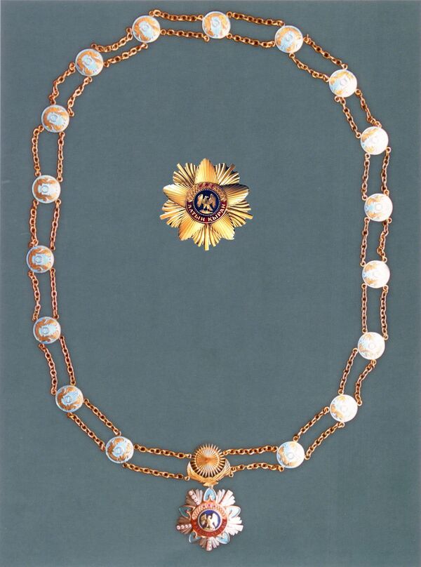 Инсигнии ордена состоят из знака на орденской цепи и звезды.