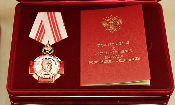 На фоне распространения COVID-19 в России было принято решение об учреждении новых государственных наград, предназначенных для поощрения отличившихся в условиях эпидемии медицинских работников; В. В. Путин заявил, что «беспримерные свершения во имя своего народа, Родины, безусловно, достойны особого поощрения со стороны государства»[24]. Указом Президента Российской Федерации от 19 июня 2020 года № 404 были утверждены статут и описание ордена Пирогова[25]. Как отмечало издание «РБК», орден Пирогова стал первым орденом, учреждённым в России с 2012 года: 3 мая 2012 года президент России Д. А. Медведев учредил орден Святой великомученицы Екатерины[26]. Одновременно с орденом Пирогова этим же президентским указом была учреждена медаль Луки Крымского[25][26].
