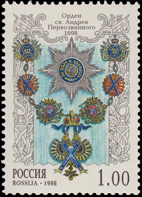 Императорский орден Святого апостола Андрея Первозванного — первый по времени учреждения российский орден, высший орден[Комм. 1] Русского царства и Российской империи с 1698 по 1917 год. Учредителем награды был Пётр I, во время его царствования 38 человек стали кавалерами этого ордена. Сам правитель тоже получил эту награду в 1703 году за битву со шведами в устье Невы.