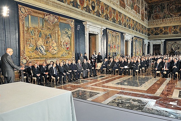 Принятие успешных кандидатов в состав Ордена производится Президентом Итальянской Республики в октябре в Квиринальском дворце в Риме в присутствии всех действующих членов Ордена[13].