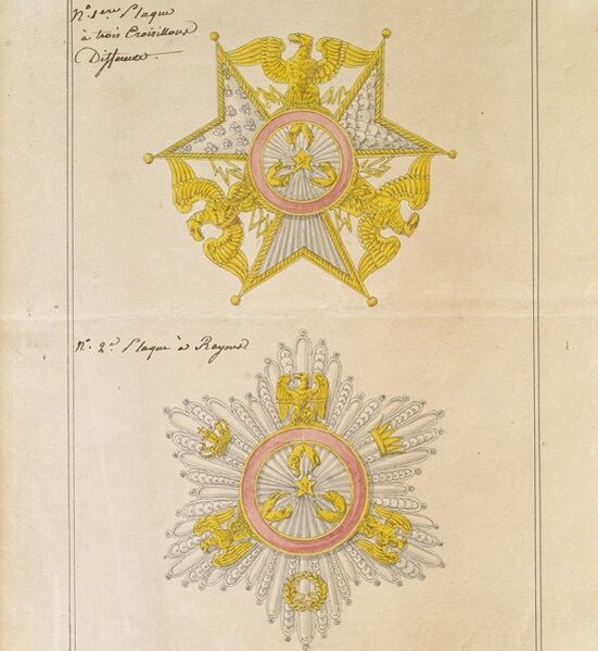 Барон Лежён разработал дизайн знаков отличия в соответствии с пожеланиями Наполеона.