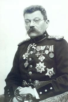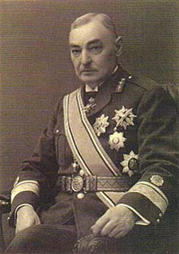 Крест на широкой ленте через правое плечо и звезда на левой стороне груди.
