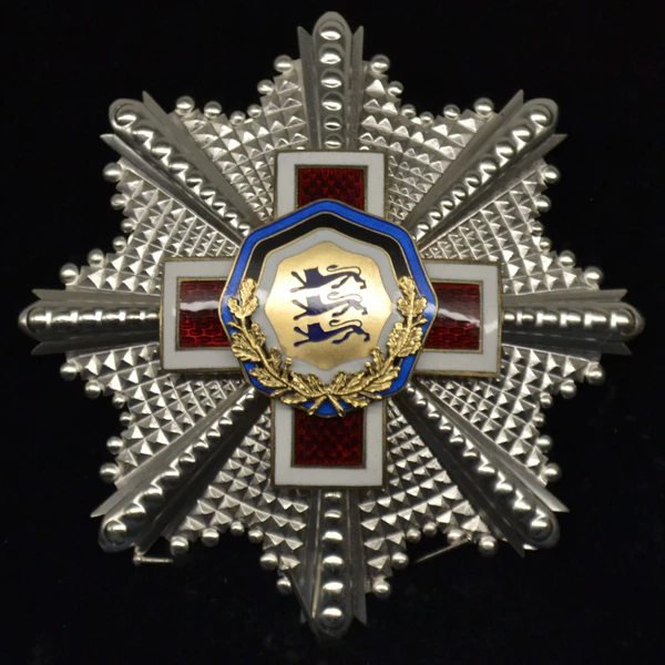 Звезда — серебряная восьмиконечная, диаметром 86 мм. На центр звезды наложен золотой прямой крест тёмно-красной эмали с белой каймой. В центре креста золотой медальон с тремя лазоревыми леопардами (герб Эстонии), окаймлённый образующими восьмигранник волнистыми лентами эстонских государственных цветов — синей, чёрной и белой, на которые в нижней части наложен золотой полувенок из дубовых ветвей.