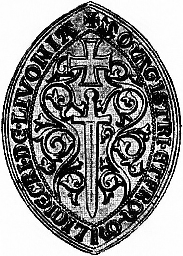 - 20 октября 1210 года: епископ Альберт и магистр Фольквин получают от Папы Иннокентия III привилегию на раздел Ливонии (Livonia) и Семигалии (Semigallia), а также новое разрешение на отпущение грехов. Именно в этой булле происходит действительное утверждение ордена Папой[5].