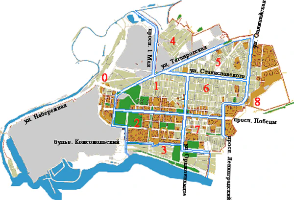 - ул. Орджоникидзе (в 2016—2022 — ул. Украинского казачества)