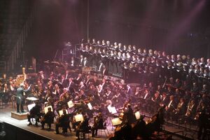 Эстрадный оркестр — коллектив музыкантов, исполняющих эстрадную и джазовую музыку. Эстрадный оркестр состоит из струнных, духовых (в том числе саксофонов, обычно не представленных в духовых группах симфонических оркестров), клавишных, ударных и электромузыкальных инструментов[4].