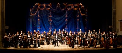 Большой симфонический оркестр насчитывает около ста музыкантов.