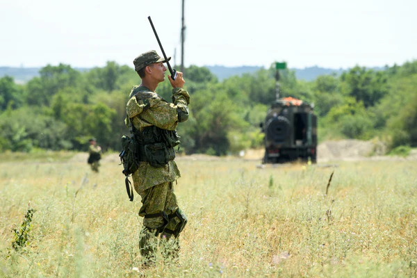Расчёт беспилотного комплекса артиллерийской разведки (БКАР) «Орлан-10» 7-й дшд(г) на учениях «Славянское братство 2018»