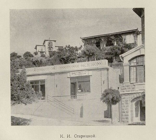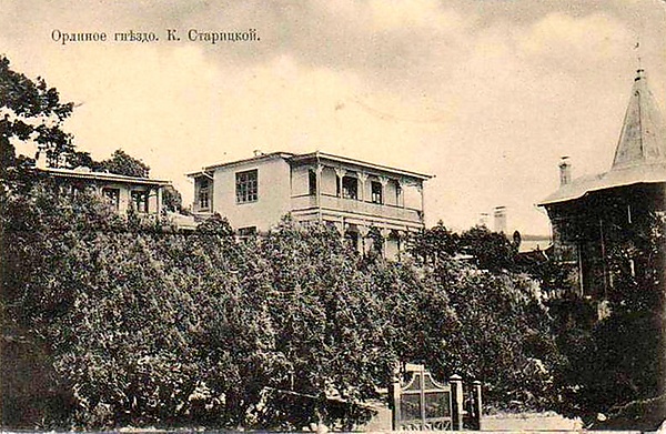 1 января 1902 года вдова штаб-ротмистра Сергея Дмитриевича Старицкого Клавдия Ивановна Старицкая приобрела у владельца Нового Симеиза И. С. Мальцова дачный участок № 35 в западной части Нового Симеиза[1] площадью 383 квадратных сажени (примерно 17,4 сотки)[2][3]. Вскоре (точное время строительства дачи пока не установлено) сама Клавдия Ивановна, по собственному проекту, выстроила двухэтажное здание на 15 комнат, предназначенное «частью для себя, частью для сдачи внаём»[1]. Также на участке были сооружены надворный флигель и флигель, выходящий на улицу, оставшиеся 333 квадратных сажени занимал парк. Комнат сдавались по цене от 15 и более рублей в месяц, для съёма предлагались от трёх до шести комнат с кухней и приличной обстановкой. Старицкая, видимо, находясь в сложном фининсовой положении, заложила дачу, но продана она не была[2][3].