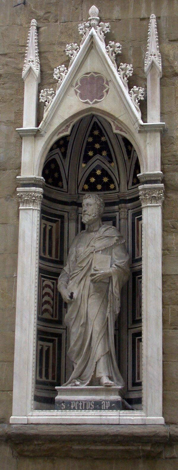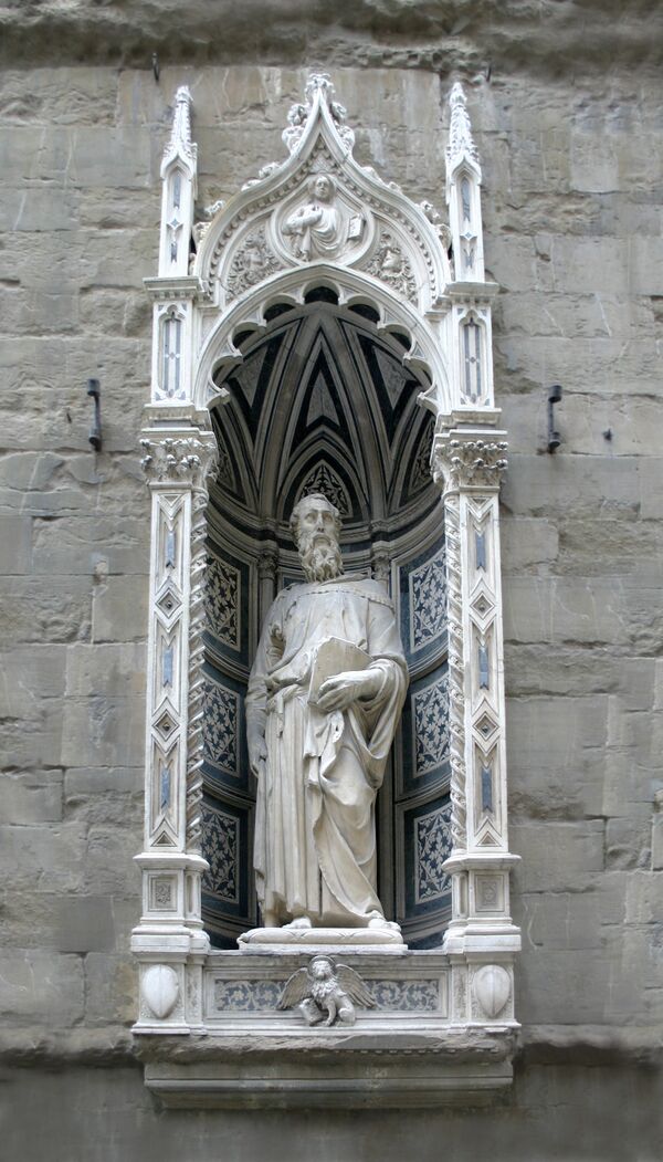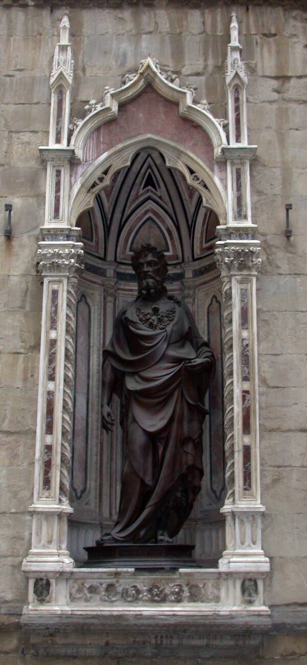 Одно из самых значительных произведений тосканского Возрождения — статуя Святого Георгия — создана Донателло в 1416—1417 годах по заказу цеха оружейников (на фасаде установлена копия, оригинал находится в музее Барджелло). Донателло также выполнил фигуру Святого Марка для цеха ткачей (1411), Нанни ди Банко — Святого Филиппа (1410—1412) находилась во второй нише с востока на северном фасаде церкви, скульптуры «Четырёх коронованных святых» (Quattro Santi Coronati), согласно легенде, каменщиков, замученных за отказ лепить статуи языческих богов, — своеобразная эмблема цеха резчиков по камню и дереву (1408), и Святого Элигия по заказу цеха златокузнецов и ювелиров — в 1417—1421 годах[4].