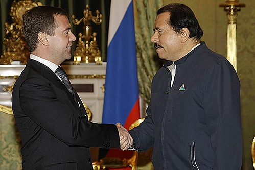18 декабря 2008 года Ортега посетил Россию с официальным визитом и встретился с президентом Дмитрием Медведевым. В ходе этой встречи был подписан пакет документов о сотрудничестве Никарагуа и России в области исследования космического пространства, использования и развития российской глобальной навигационной спутниковой системы ГЛОНАСС, энергетики, сельского хозяйства, образования, науки, инноваций[9].