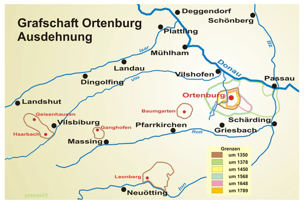 В результате войн с Бабенбергами и епископами Пассау, а также разделов, к 1275 году территория графства уменьшилась до замка Ортенбург и его непосредственных окрестностей.