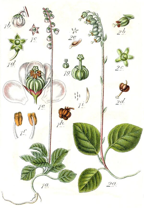 Народные названия растения: боровая матка, бокоцветка, боровая трава, боровинка, винная трава, заячья соль, грушовник, лесная грушка, зимозелёнка.