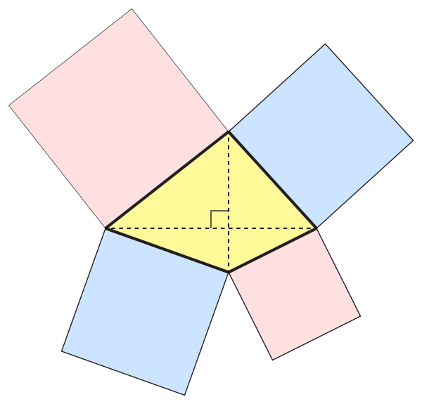 Это следует из теоремы Пифагора, по которой любая из этих двух сумм равна сумме четырёх квадратов расстояний от вершин четырёхугольника до точки пересечения диагоналей.