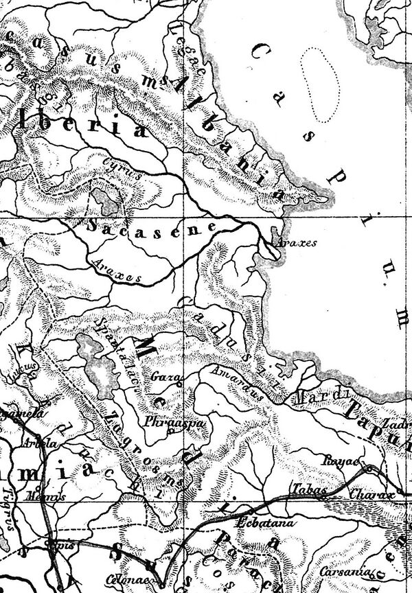 — XI, 14, 4 «„…За этой равниной идет Сакасена, тоже граничащая с Албанией и рекой Киром…“»[8] - Арриан