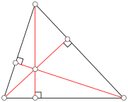 Утверждение: «Все 3 высоты треугольника пересекаются в одной точке», называемой теперь ортоцентром, в «Началах» Евклида отсутствует. Ортоцентр впервые в греческой математике использован в «Книге лемм» Архимеда, хотя явного доказательства существования ортоцентра Архимед не привёл.