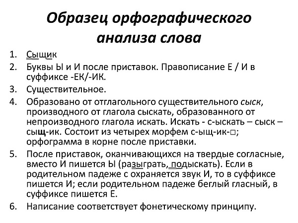 Орфографический анализ требует не только знания всех орфографических правил, но и умения применять эти правила и определять причины написания слов. Орфографический анализ слова может проводиться как письменно, так и устно.