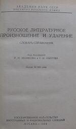 - 1955 год — «Русское литературное произношение и ударение» под редакцией Р. И. Аванесова и С. И. Ожегова[5].