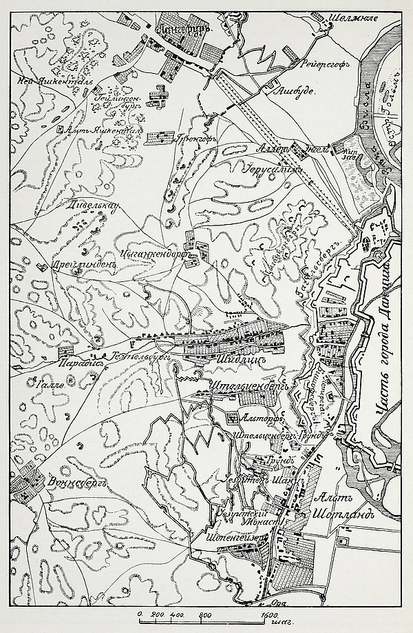 - Осада Данцига излагается по мемуарам князя Волконского и сочинению А. И. Михайловского-Данилевского «Описание войны 1813 года».
