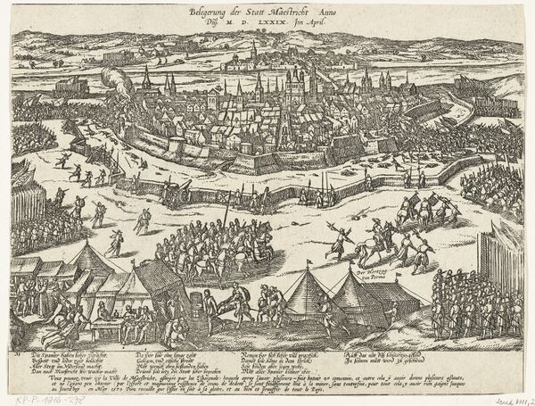 Главный удар испанцы направили на Брюссельские ворота города, к которым все ближе подступали их траншеи. Однако в ходе стычки с защитниками они обнаружили, что эти ворота не только не были слабым местом в линии укреплений, а наоборот — самым сильным. Поэтому 23 марта испанцы нанесли удар по соседним воротам Тонгерлозе из сорока шести артиллерийских орудий. Два дня бомбардировок не дали результата. Тогда Фарнезе, не прекращая атак на Тонгерлозе, дал приказ ударить по воротам Бош. Жители Маастрихта стали рыть туннели, чтобы не допустить подкопа со стороны испанцев. В подземных туннелях завязалась ожесточенная битва: сотни осаждавших погибли, когда в туннели залили кипяток, другие умерли от дыма и недостатка кислорода. Один из капитанов предложил Фарнезе атаковать равелин[6]. Пятьсот испанских солдат погибли, когда пороховой заряд, предназначенный для его подрыва, преждевременно сдетонировал[1].