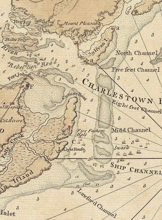 Перейдя на остров, гессенские гренадеры сразу направились к форту Джонсон, который перекрывал вход в Чарлстонскую гавань. Они обнаружили, что американцы покинули форт и сравняли его с землёй. 28 февраля американские корабли открыли огонь по британцам, убив трёх человек. К 1 марта англичане надёжно обосновались на острове Джеймса, а к 4 марта полностью восстановили мост, ведущий на материк. Ещё несколько дней они перемещали на остров военное снаряжение, а 10 марта лорд Корнуоллис лично повёл армию через мост на континент. Чтобы американский флот не угрожал правому флангу наступающей армии, Клинтон велел построить батарею на острове Джеймса. К 12 марта батарея была закончена и на ней установили три 32-фунтовых корабельных орудия и два 24-фунтовых. Батарея стояла в 1900 ярдах от Чарлстона, и её орудия легко добивали до города, но их основной целью были американские корабли. Впоследствии в городе были найдены два ядра с этой батареи[29].