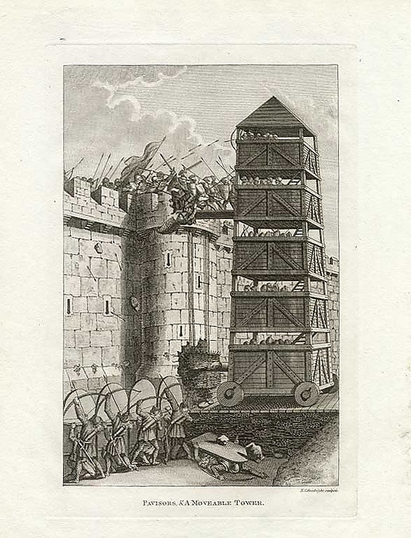 Однако защитники остановили эту башню, затопив территорию перед стеной, так, что башня завязла в грязи. Это показывает, что для применения больших осадных башен нужна ровная поверхность. Многие крепости и города, находящиеся на возвышенностях, оказывались неуязвимыми для осадных башен в силу неподходящего рельефа местности.