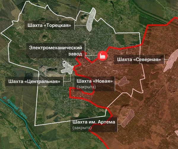 Глава ДНР Денис Пушилин сообщил, что шахта «Торецкая» является последним укрепрайоном ВСУ в Дзержинске[6].