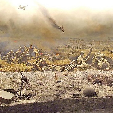 Круговое полотно панорамы имеет длину около 40 метров, высоту 3 метра.