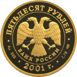 - Монета из золота 900 пробы номиналом 50 рублей тиражом 1 500 штук.
