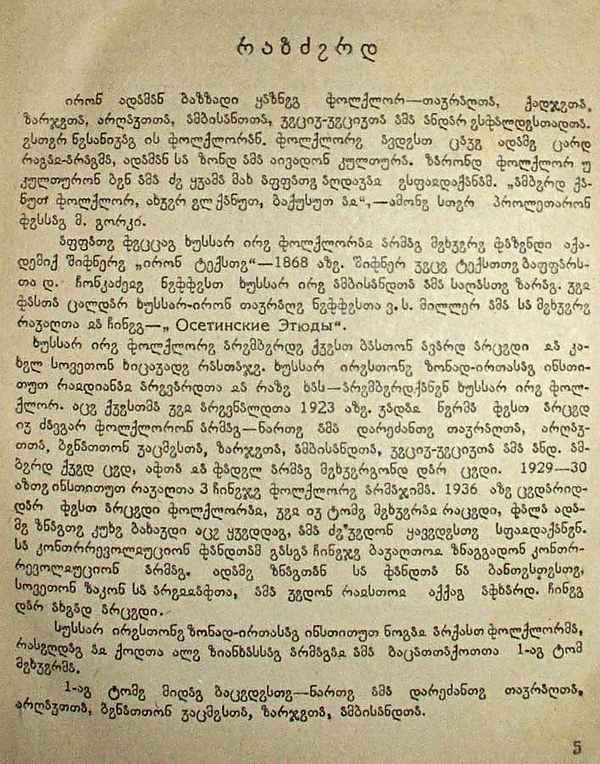 За весь XIX век на осетинском языке были изданы 43 книги, из них религиозного содержания (переводных) — 24, учебных — 13, этнографических — 3, художественных — 3 (А. Кубалов «ӕфхӕрдты Хӕсана», Б. Гуржибеков «Сахи рӕсугъд», К. Хетагуров «Ирон фӕндыр»)[40].