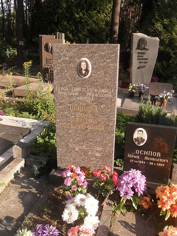 - Мемориальная доска в честь Героя Советского Союза М. Б. Осиповой установлена в городе Минске по адресу: улица Киселёва, 11.