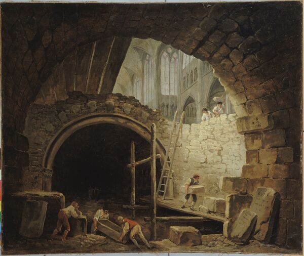 Жермен Пуарье впервые присутствовал на эксгумации в августе 1793 года, во время которой из средневековых захоронений были извлечены останки: