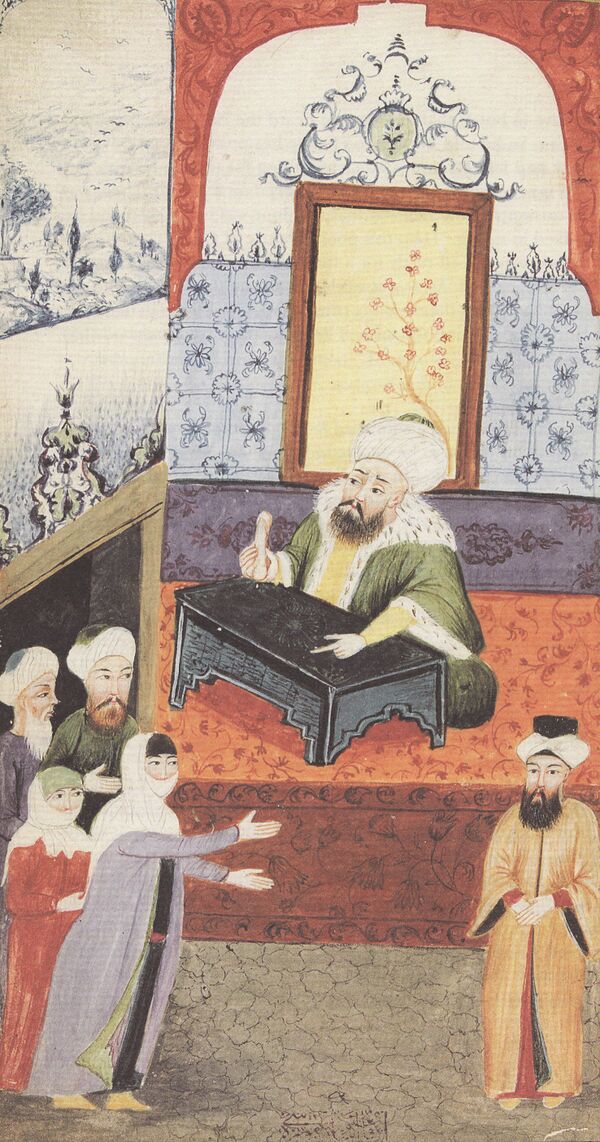 Высокое положение халифата, управлявшегося султаном, в исламе позволило создать туркам османский халифат. Османский султан (или падишах, «царь царей») был единственным правителем империи и являлся олицетворением государственной власти, хотя он не всегда осуществлял абсолютный контроль. Новым султаном всегда становился один из сыновей прежнего султана. Прочная система образования дворцовой школы была направлена на ликвидацию неподходящих возможных наследников и создания поддержки для правящей элиты преемника. Дворцовые школы, в которых учились будущие государственные чиновники, были не обособленны. В Медресе (осман. Medrese) учились мусульмане, здесь преподавали учёные и государственные чиновники. Материальную поддержку оказывали вакуфы, что позволяло детям из бедных семей получить высшее образование[85], христиане же учились в эндеруне[86], куда набирались ежегодно 3000 мальчиков-христиан от 8 до 12 лет из 40 семей из населения Румелии и/или Балкан (девширме)[87].