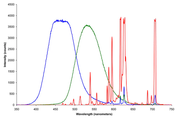 В нашем глазу есть три вида колбочек — красные, зелёные и фиолетовые. Поэтому дисплеи используют в качестве основных красный, жёлто-зелёный и синий.