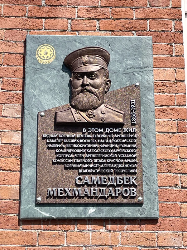 Двухэтажное кирпичное здание было построено в конце XIX века по заказу Адиль-Гирея Ахундова для размещения в нём Владикавказского отделения Санкт-Петербургского страхового общества[2]. Здание в последующем принадлежало подполковнику царской армии Ирзабеку Ахундову — внучатому племяннику драматурга Мирзы Фатали Ахундова. В 1910-ые годы в здании проживали азербайджанский композитор Узейр Абдул Гусейн оглы Гаджибеков[1] и генерал Самед-бек Садых-бек Мехмандаров.