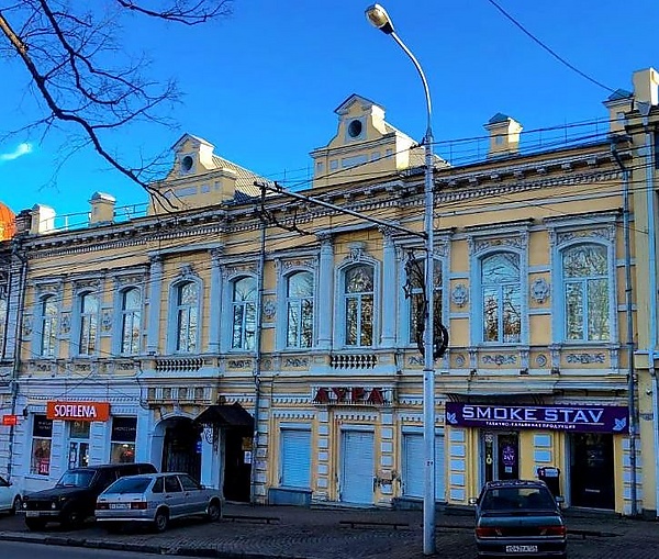 В 1830-х годах собственником городской усадьбы на Большой Черкасской улице (Николаевский проспект с 1851 года, ныне проспект Карла Маркса), где впоследствии был возведён объект культурного наследия, значился ставропольский купец первой гильдии Фрол Тарасов. Купец выстроил двухэтажный деревянный дом с торговой лавкой, в которую вёл вход с Большой Черкасской. Через некоторое время усадьба стала собственностью войскового старшины Павла Полушкина, продавшего недвижимость нахичеванскому купцу третьей гильдии Варфоломею Яковлевичу Попову[2][4].