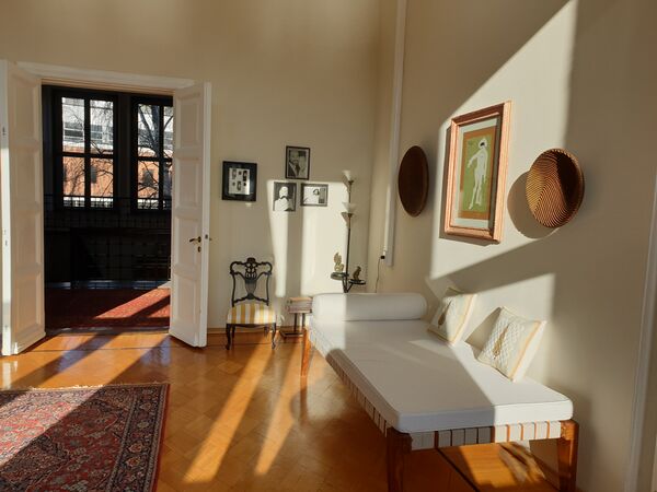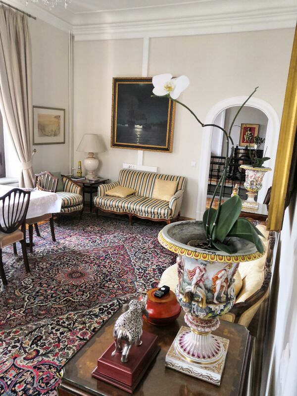 Передняя сплошь завешана картинами русских художников. Их уже вешать некуда. Висят они и над вешалкой, и под окнами... В зале тоже картины, всюду и везде, в гостиной тоже. Горят лампы. Цветков одинокий, но благодаря картинам в квартире тепло и уютно. Чувствуется, что она согрета чем-то хорошим[15].