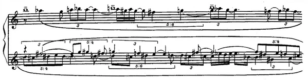 Из особых ритмических групп в музыке классико-романтического периода наиболее распространены триоли (3:2); существуют также дуоли (2:3), реже квартоли (4:3 или 4:6), квинтоли (5:4, 5:6), секстоли, октоли и т. д.[3][5] В музыке XX века в связи с ритмическими экспериментами авангардистов появились многие примеры более изощрённых и нерегулярных ритмических групп. Для указания способа особого ритмического деления композитор в таких случаях использует обыкновенную дробь, которую он помещает в центр квадратной скобки, показывающей границы обособленной группы. Например, дробь 9:8 означает ритмическую фигуру, нотируемую из девяти длительностей, но звучащую в течение времени, равного восьми таким же длительностям.