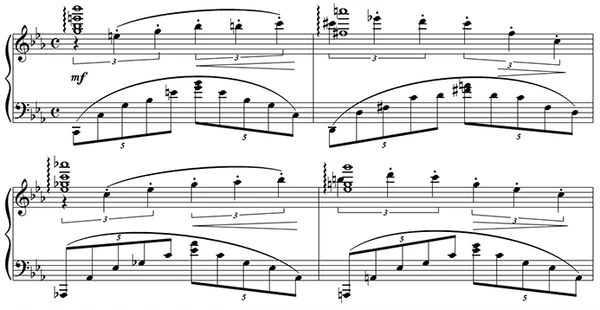 Например, триоль (русский термин от фр. triolet, англ. triplet) 3:2 представляет собой группу из трёх нот одинаковой длительности, в сумме по времени звучания равных 2 нотам той же длительности. Квинтоль (от фр. quintolet, англ. quintuplet) 5:4 — группа из пяти нот, в сумме по времени звучания равных 4 нотам той же длительности (при такте 4/4) или 5:3 — равных 3 нотам той же длительности (при такте 6/8).