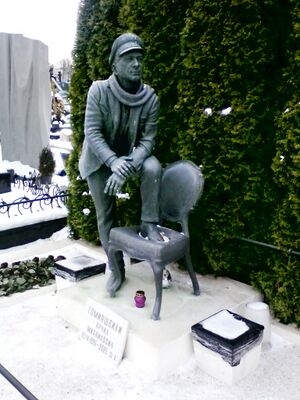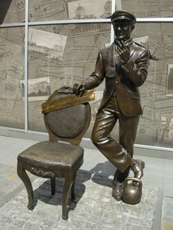 - Москва, Троекуровское кладбище — памятник актёру Арчилу Гомиашвили в образе Остапа Бендера.