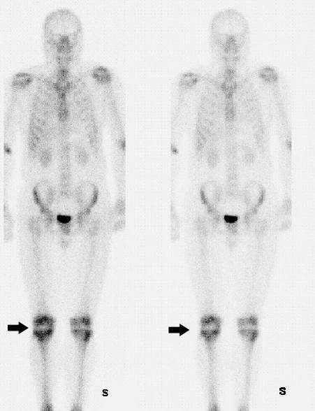 Остеосцинтиграфия — самый чувствительный тест на обнаружение ранних патологических изменений в суставах, основу которых составляет поражение синовиальной оболочки с нередкими изменениями внутрисуставных костных структур. Так на сцинтиграммах при артропатиях отмечают: