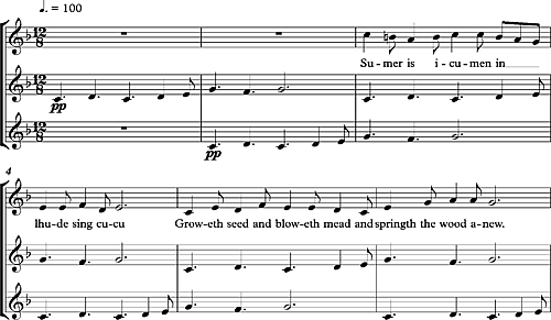 Остинатные формулы присутствуют в европейской музыке начиная со Средних веков. В знаменитом английском каноне «Sumer Is Icumen In» основные вокальные линии поддерживаются остинатным рисунком, известным как pes: