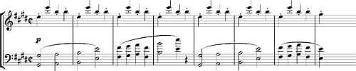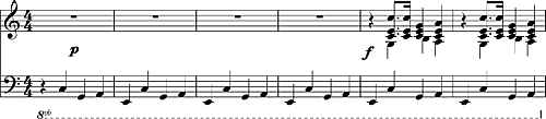 Позже Бетховен меняет распределение: мелодия переходит к альту и виолончели, а остинато — к скрипкам: