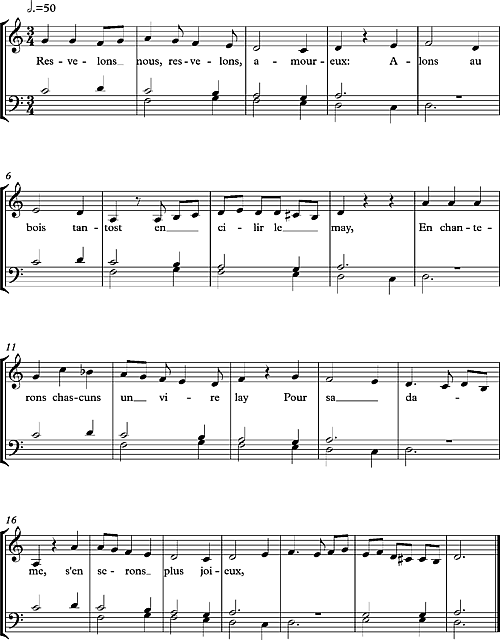 Позднее, в XV веке, Гийом Дюфаи в своей песне Resvelons Nous использует схожий по конструкции остинато, но уже длиной в 5 тактов. Над этим рисунком основная мелодия движется свободно, варьируя длину фраз, но «в определённой степени подчиняясь повторяющемуся канону в нижних голосах»[7].
