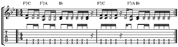 Фанк 1970-х часто строится на короткой одно- или двухтактовой фигуре на одном аккорде, которая в джазе или соуле служила бы вступительным вампом, но здесь становится основой всей композиции (например, «Funky Drummer» Джеймса Брауна). Джаз, блюз и рок почти всегда строятся на гармонических последовательностях, где смена аккордов создаёт напряжение и поддерживает интерес слушателя. В фанке же основой служит ритмический грув ударных и ритм-секции, обычно на одном аккорде. «В фанке гармония часто вторична по отношению к 'lock' — сцеплению контрапунктных партий гитары, баса и ударных в повторяющемся вампе»[30]