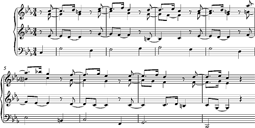 Интервалы в этом рисунке встречаются во многих произведениях эпохи барокко. Канон Пахельбеля также использует схожую последовательность нот в басу: