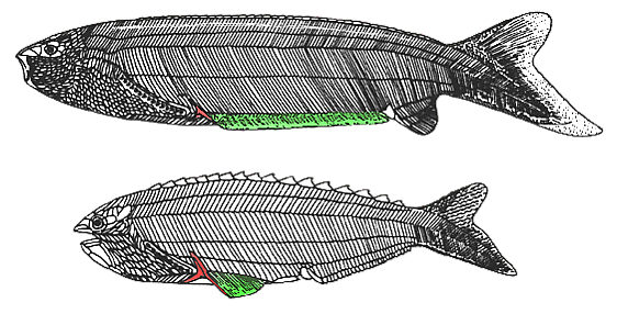 Спинной плавник (иногда два) был у большинства костнопанцирных и телодонтов. Анальный плавник встречался в этих же группах и у беспанцирных[6].