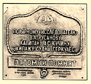 В 1934 году исследователи, проводившие на острове Геркулес (тогда остров Вейзеля) топографические работы, натолкнулись на врытый в землю деревянный столб с надписью «Геркулес 1913». Двадцатью годами ранее где-то в районе Карского моря пропало судно «Геркулес», шедшее под руководством полярного исследователя геолога Владимира Русанова. В 1913 году Русанов намеревался пройти на «Геркулесе» вдоль всего северного побережья России. Поиски тогда результатов не дали, и открытие столба указывало на пребывание членов команды Русанова на острове. Это было подтверждено последующими находками — остатки одежды, патроны, компас, фотоаппарат, охотничий нож и другие вещи, принадлежавшие участникам экспедиции на «Геркулесе», обнаруженные на острове Попова-Чукчина (в то время безымянный)[2]. В память о погибшей экспедиции остров Вейзеля был переименован в остров Геркулес и на острове была установлена мемориальная доска.