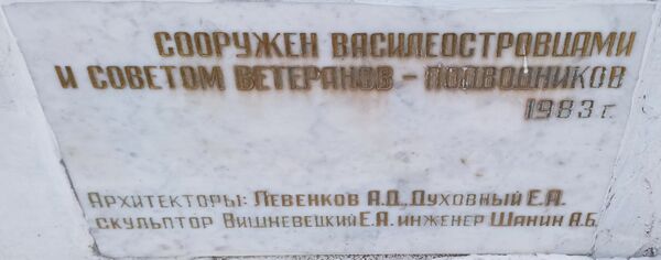 - «Памяти учащихся ремесленных железнодорожных училищ, школ ФЗО, работавших и погибших в блокадном Ленинграде 1941—1944. Ваш подвиг будет жить в веках»[19];