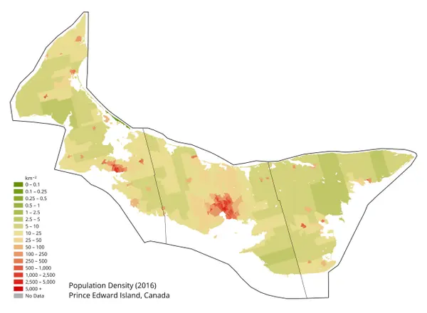 Остров Принца Эдуарда является самой маленькой провинцией Канады по численности населения. Это самая густонаселённая провинция страны, плотность населения составляет 25,25 человека на кв.км.